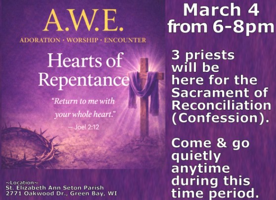 St. Elizabeth Ann Seton Parish – Sacrament of Reconciliation, March 4, 2026 6-8pm Posted on March 3, 2026March 3, 2026 by Kathy Samson